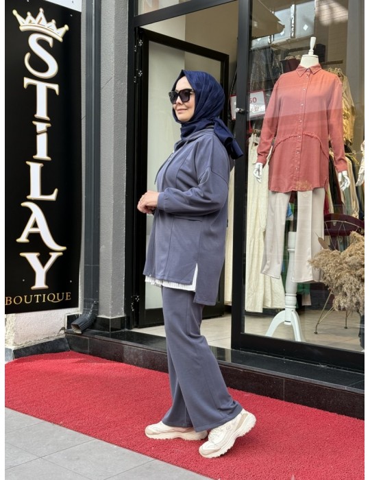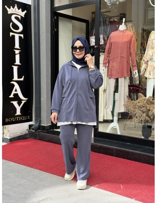 KAPŞONLU FERMUAR DETAYLI MODAL TAKIM LACİVERT