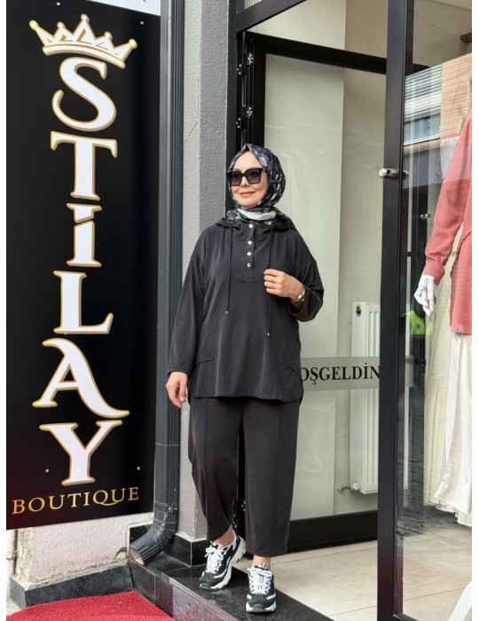 ÇITÇITLI TENSEL MODAL TAKIM SİYAH