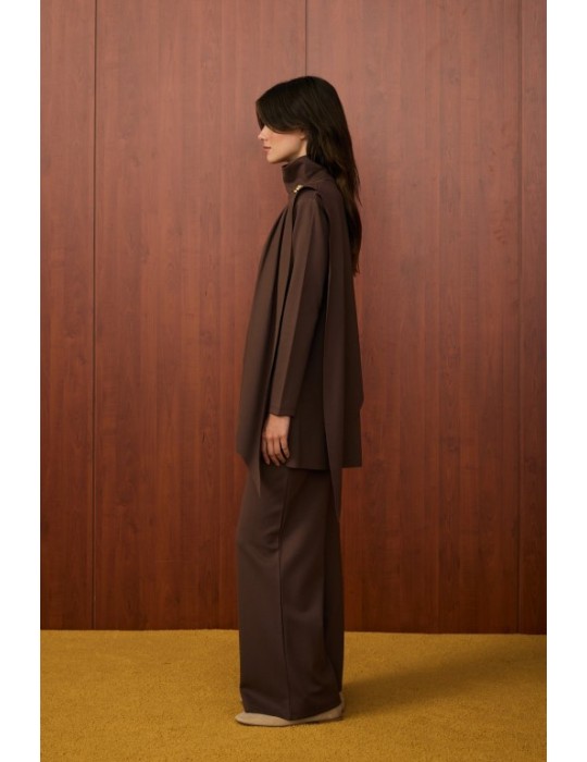 Pantolon düz paçalı ve geniş kesimlidir, rahat kalıptadır.