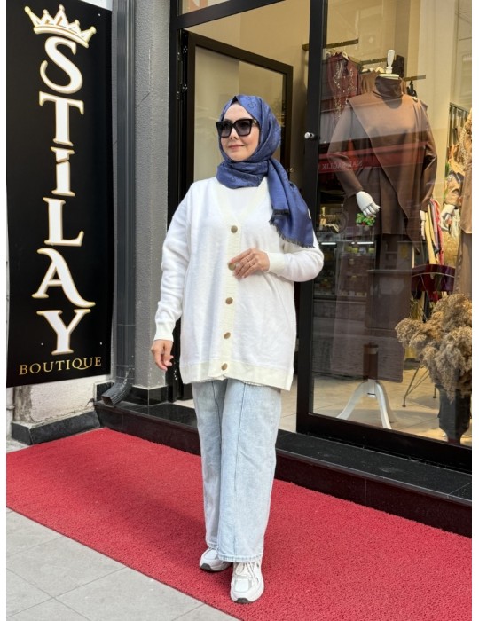 GEMİCİ YAKA TAŞ DETAYLI TAKIM BEYAZ