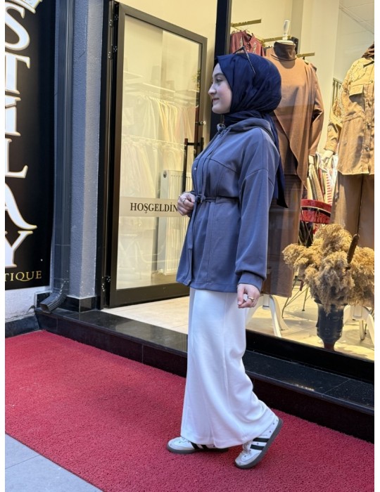 KAPŞONLU MODAL GİY ÇIK KAP İNDİGO