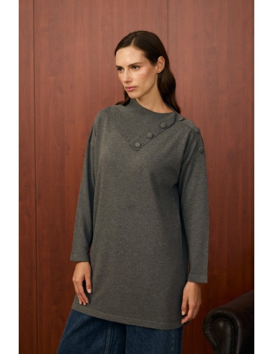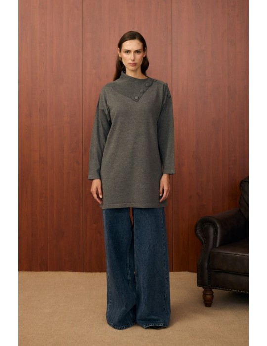 KOLU DÜĞMELİ MERSERİZE TUNİK EKRU