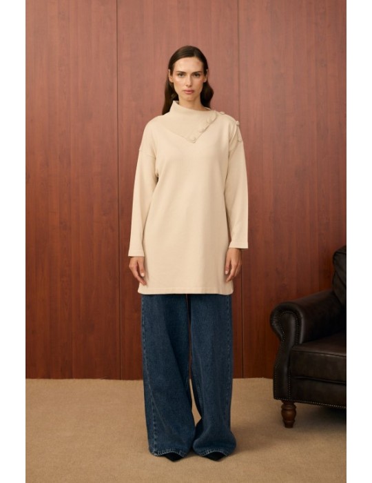 SOĞUK İPLİK MERSERİZE TUNİK EKRU