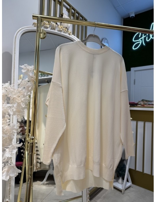 KOLU DÜĞMELİ MERSERİZE TUNİK EKRU