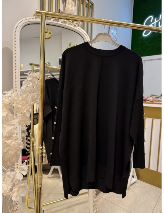 KOLU DÜĞMELİ MERSERİZE TUNİK SİYAH