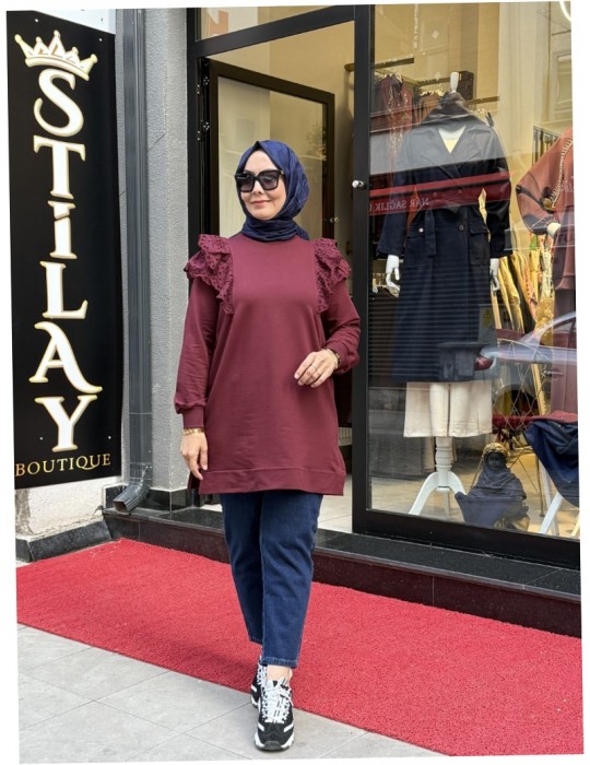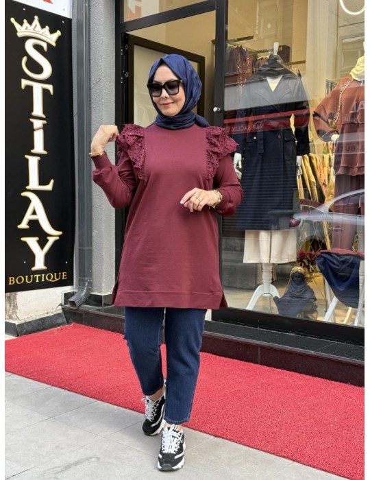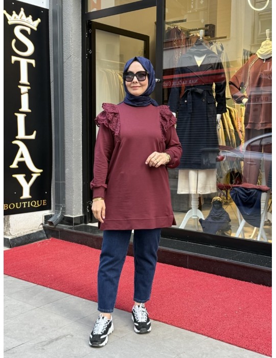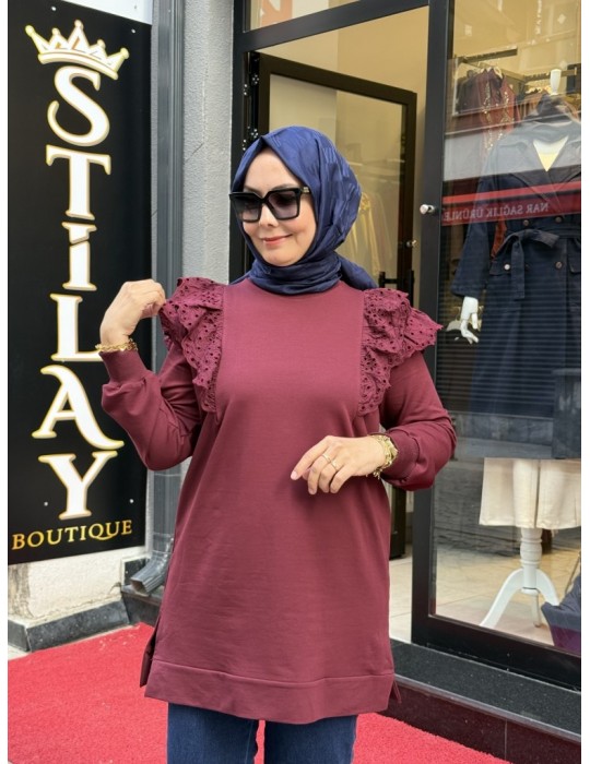 KOLU DÜĞMELİ MERSERİZE TUNİK BORDO