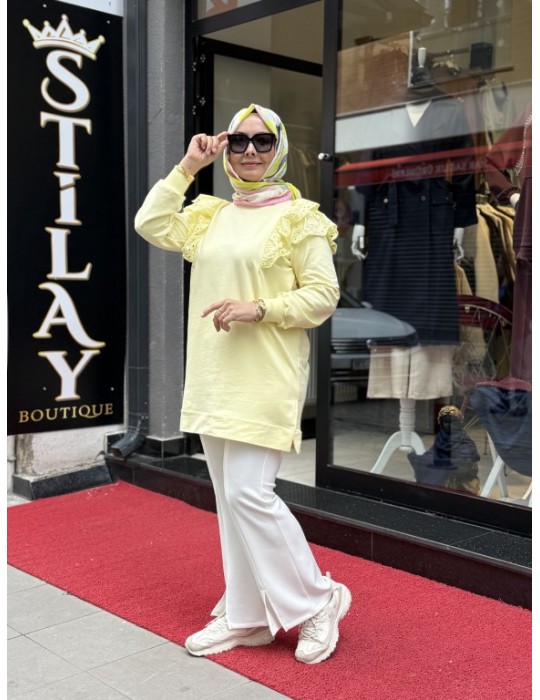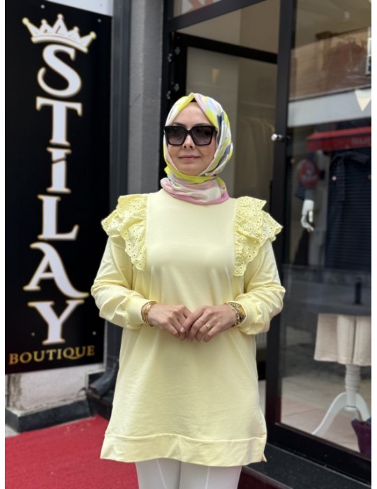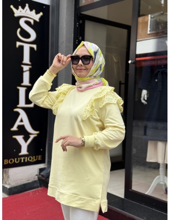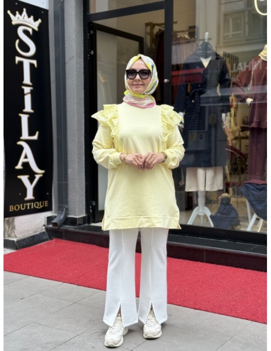 ÇITÇITLI TAŞ DETAYLI KOT TUNİK AÇIK MAVİ