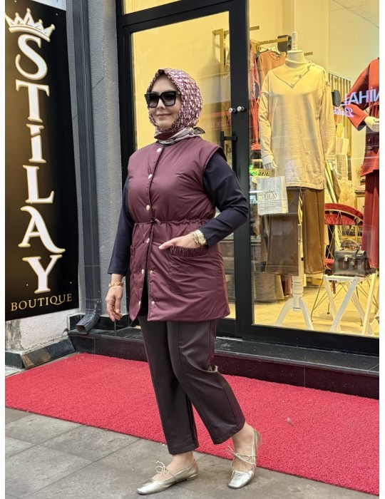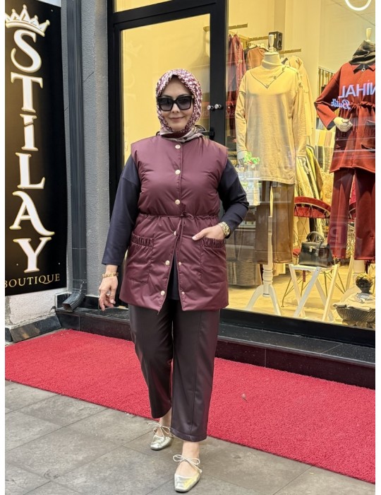 TAŞ İŞLEMELİ TENSEL GÖMLEK BORDO