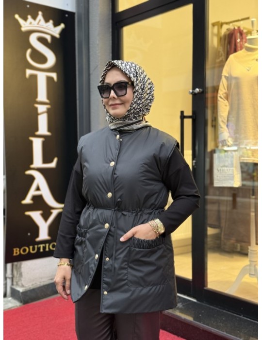 PELUŞ KAPŞON DETAYLI ŞİŞME YELEK FUŞYA