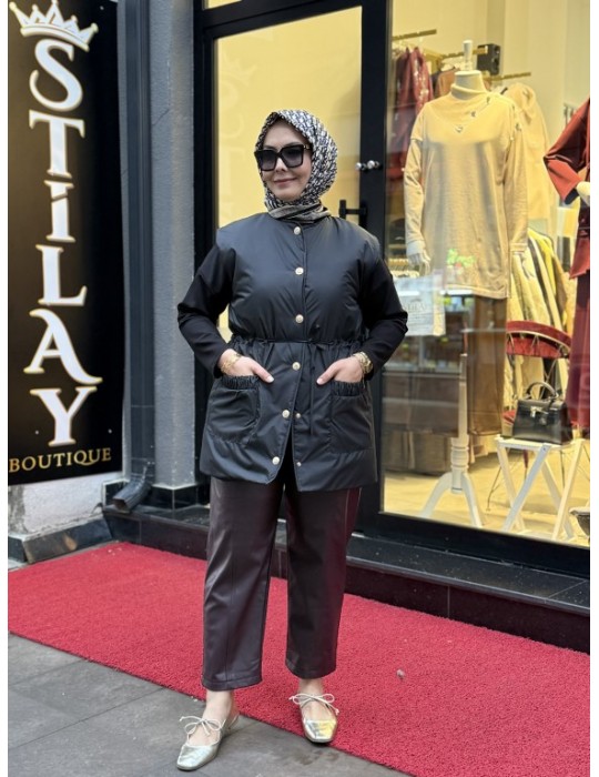 TAŞLI VE NAKIŞ DETAYLI KAPÜŞONLU KAP SİYAH