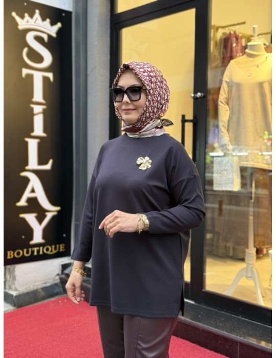Üzerinde broş aksesuar detayı ile zarif görünüm