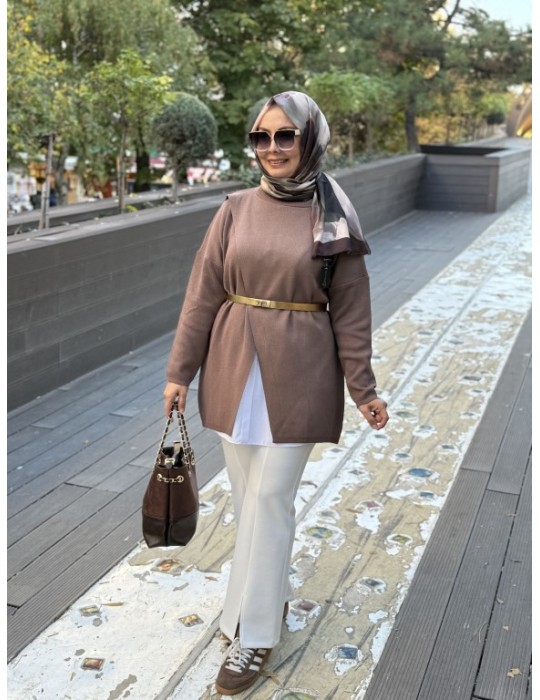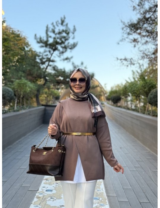 Yuvarlak yaka detayı ile sade ve şık bir duruş sağlar.