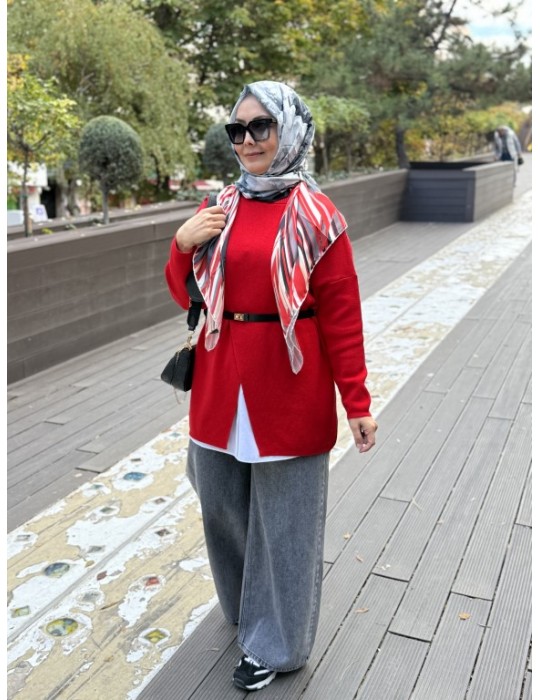 MRW MAKAS TRİKO TUNİK KIRMIZI