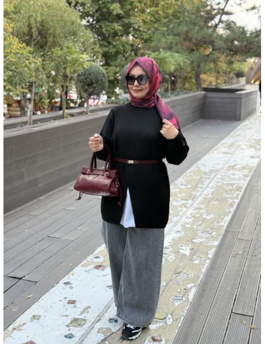 MRW MAKAS TRİKO TUNİK SİYAH