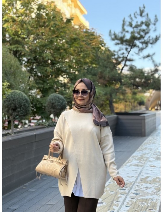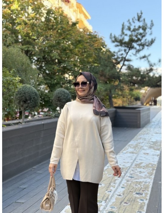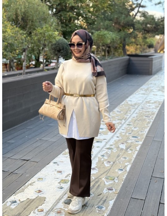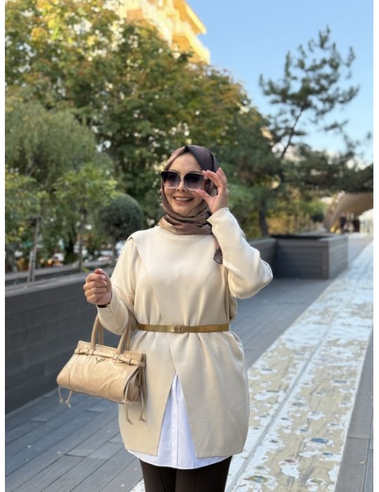 MRW MAKAS TRİKO TUNİK BEJ