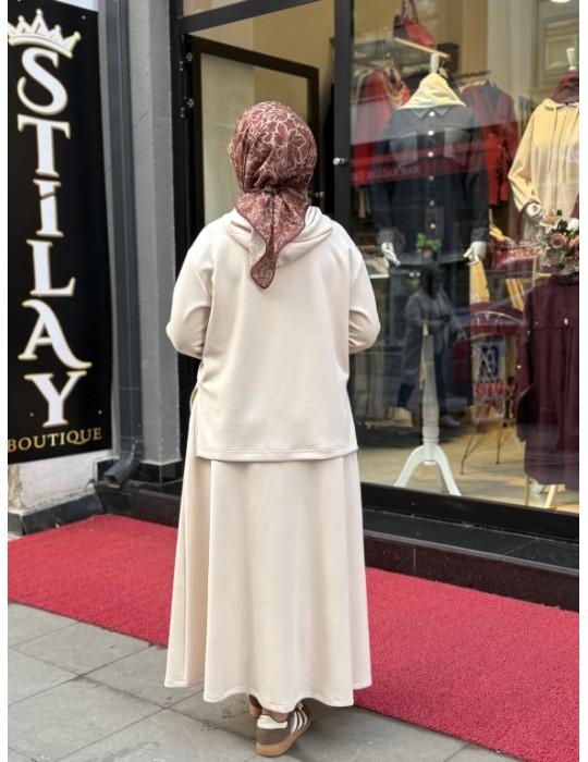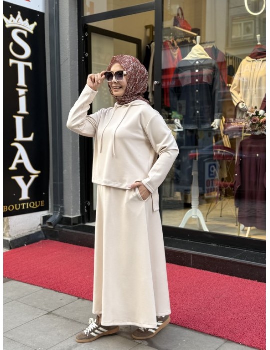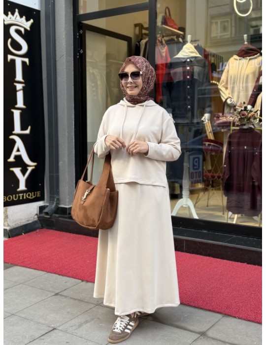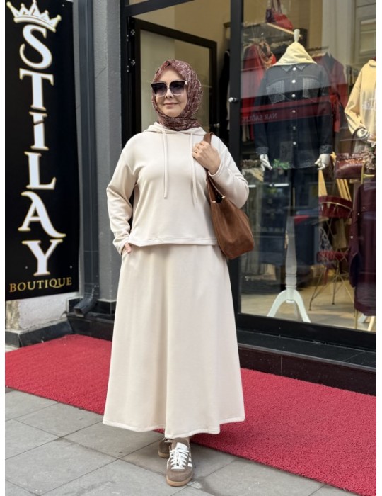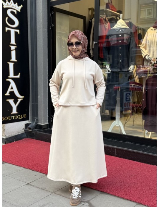 ETEKLİ KAPŞON DETAYLI MODAL TAKIM KREM