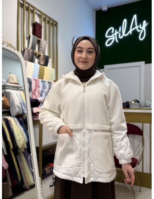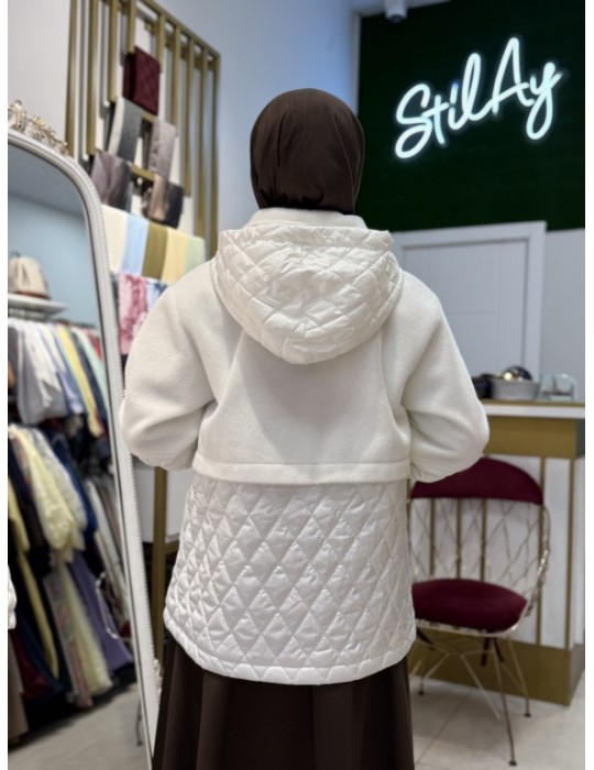 KAPİTONE DETAYLI ANGORA MONT BEYAZ