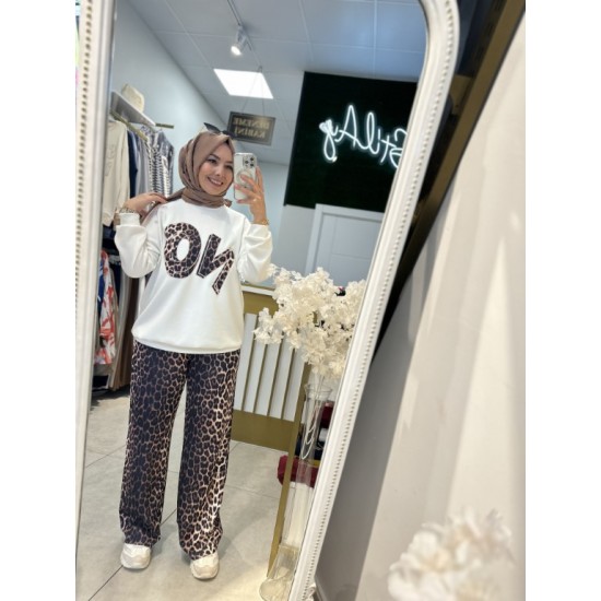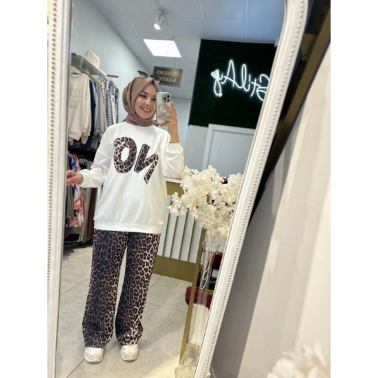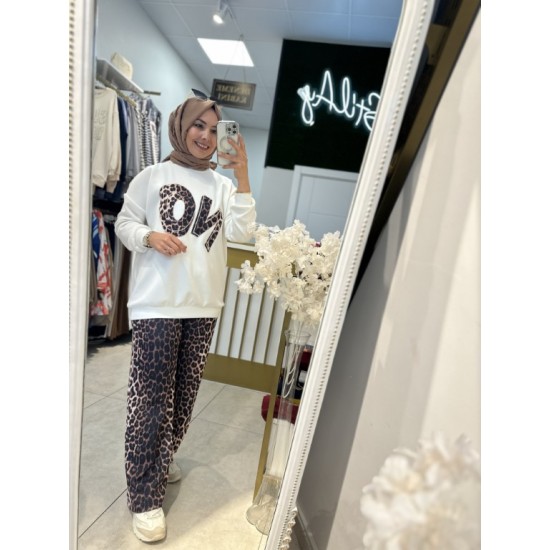 LEOPAR PANTOLONLU OYSHO TAKIM EKRU