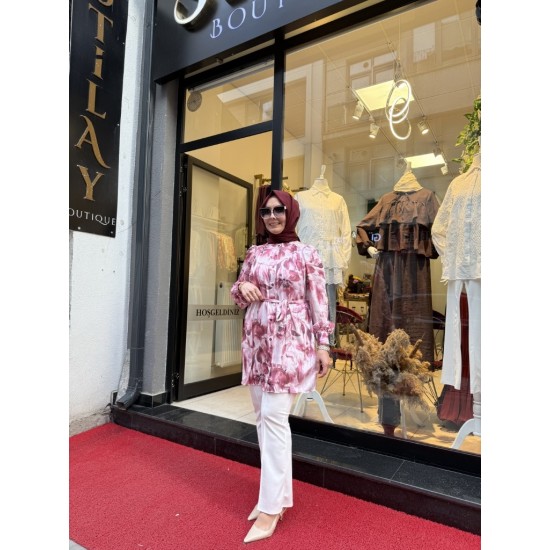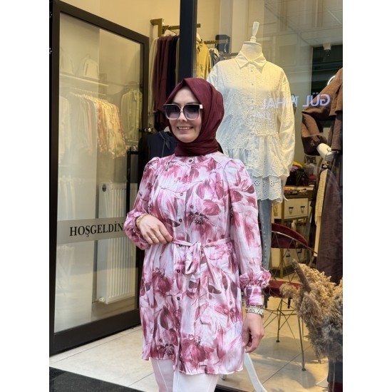 Zarif ve modern tasarımıyla öne çıkan bu yoryo krep tuniğimiz, günlük kullanımdan özel davetlere kadar birçok ortamda rahatlıkla tercih edilebilir. Seyyar kemeri ile belinizi vurgulayarak feminen bir görünüm elde etmenize yardımcı olur.