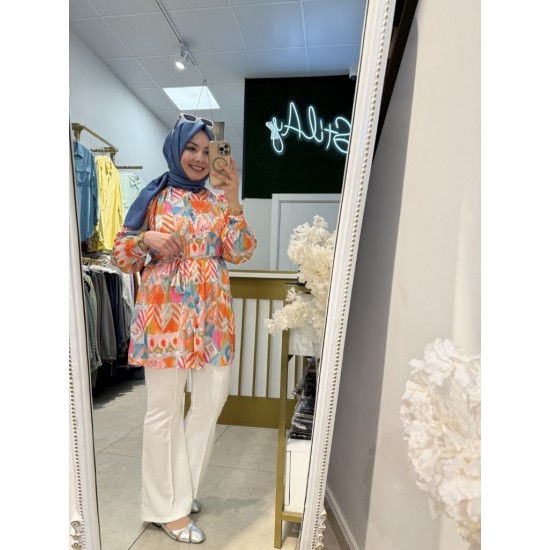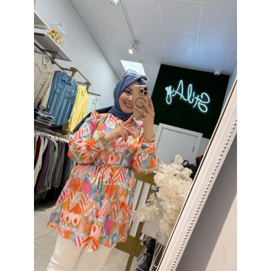 Zarif ve modern tasarımıyla öne çıkan bu yoryo krep tuniğimiz, günlük kullanımdan özel davetlere kadar birçok ortamda rahatlıkla tercih edilebilir. Seyyar kemeri ile belinizi vurgulayarak feminen bir görünüm elde etmenize yardımcı olur.