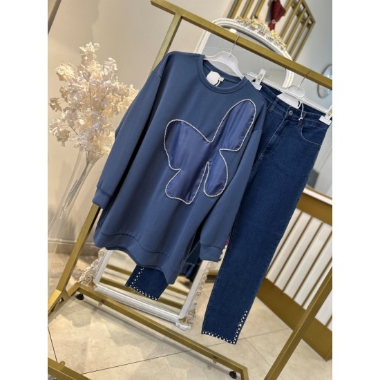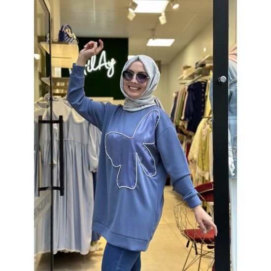 TAŞ İŞLEMELİ SWEAT İNDİGO