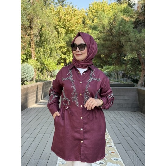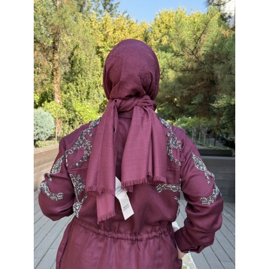 ÖZEL TASARIM BONCUK İŞLEMELİ BÜZGÜLÜ KAP BORDO