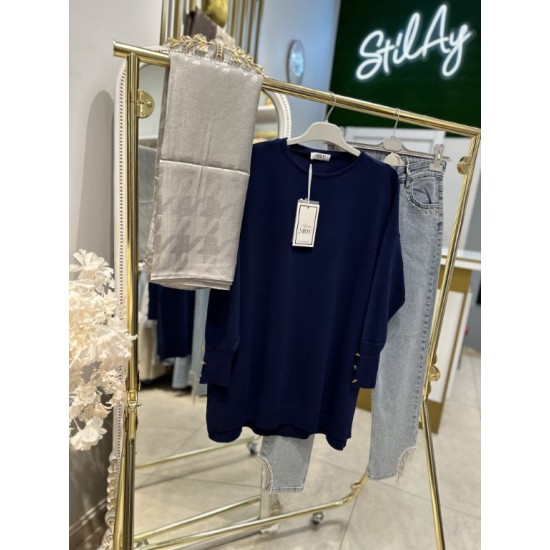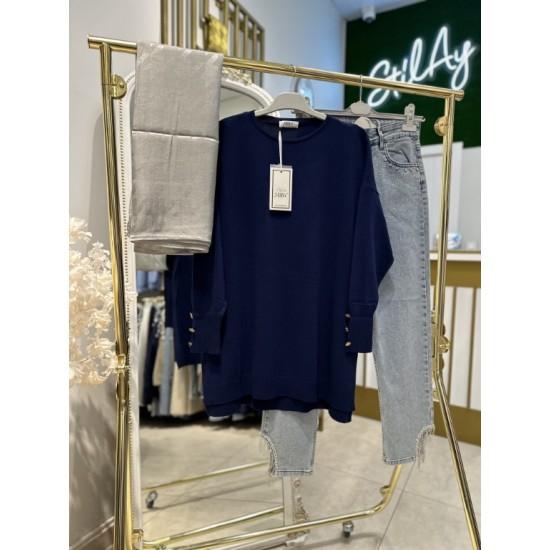 KOLU DÜĞMELİ TUNİK LACİVERT