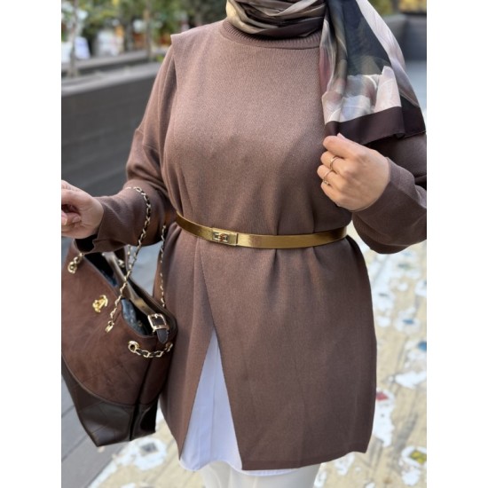MRW MAKAS TRİKO TUNİK KAHVE
